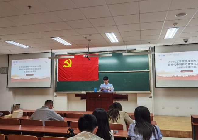 党委副书记温海鹏领学了“习近平总书记在学习贯彻习近平新时代中国特色社会主义思想主题教育工作会议上的讲话”,副院长褚海斌、学工办主任兼团总支书记杨文超、工会主席赵睿国分别领学了《习近平新时代中国特色社会主义思想学习纲要》部分章节。学院党委为各学生党支部党员配发了学习书籍《习近平新时代中国特色社会主义思想学习纲要》,各学生支部党员代表在读书班上领学了学习内容。