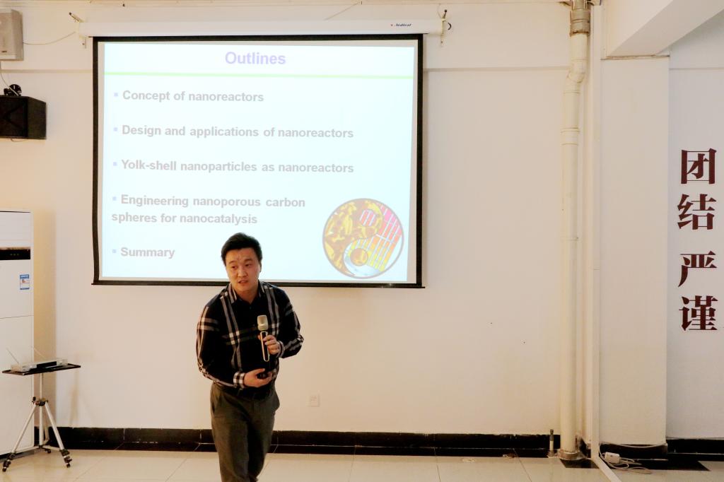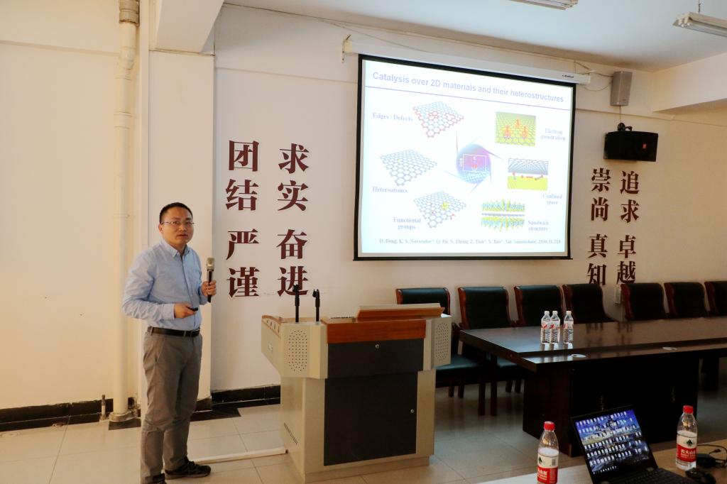2018年4月23日,我校太阳集团tyc33455迎来四位青年科学家。西安电子科技大学王忠良教授、中国科学院大连化学物理研究所刘健研究员、中国科学院大连化学物理研究所邓德会研究员、南开大学刘遵峰教授访问我校太阳集团tyc33455,并在桃李学术论坛分别做了题为“Lighting Up and Precisely Resecting Tumours” 、“微纳米反应器的构筑”、 “二维材料表界面调控与能源小分子催化转化”、 “碳纳米管弹性纤维在可穿戴设备领域的应用”的学术报告。报告会由太阳集团tyc33455院长助理褚海斌教授主持。太阳集团tyc33455院长张军教授、副院长陈树峰教授、副院长白凤华副教授、王春燕研究员等学院十多位教师与研究生参加了报告会。报告之后,四位教授又就相关学术问题与我院师生进行了深入的讨论。