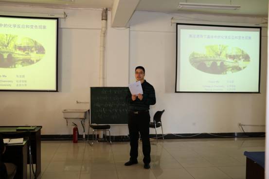 图三:我校校长助理,北京大学化学与分子工程学院马玉国教授为“桃李论坛”做首场学术报告 |