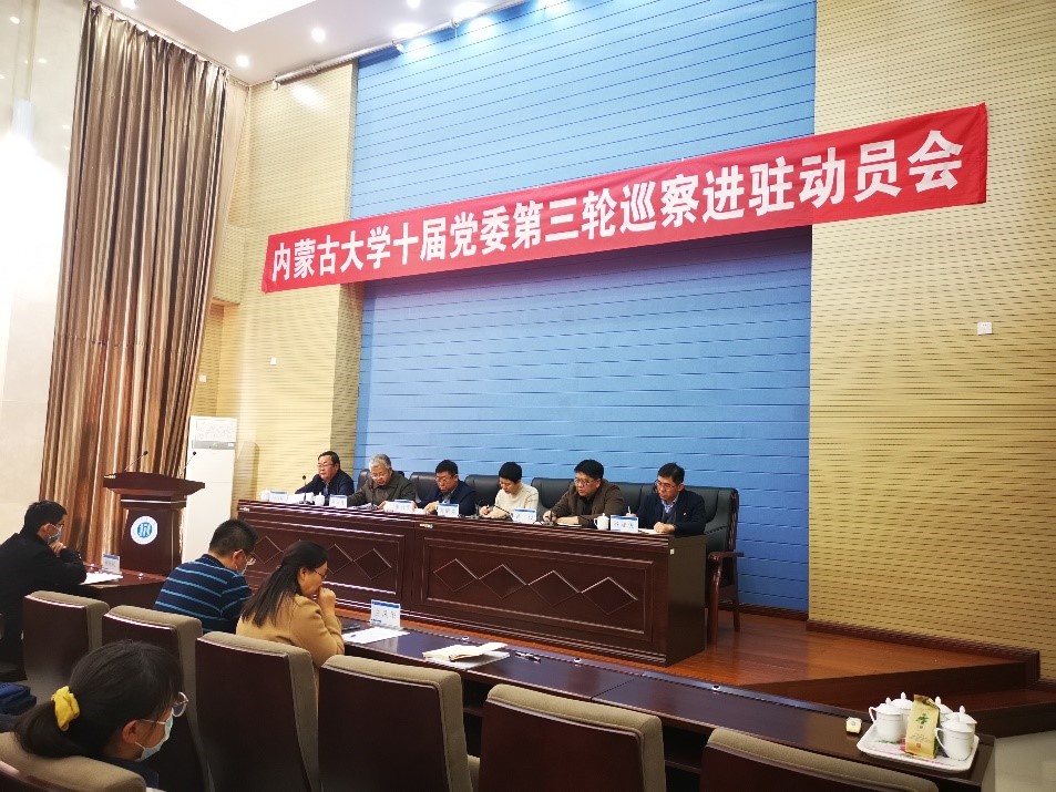 11月18日下午, 按照学校党委统一部署,十届党委第三轮巡察第一巡察组在国重320会议室召开巡察我院进驻动员会。会上,第一巡察组组长、交通职业技术学院纪委书记阿云嘎通报了巡察任务和总体安排,校党委委员、纪委书记、监察专员、学校党委巡察工作领导小组副组长张利平就做好本次巡察工作提出要求,学院党委书记杨俊峰主持会议并作表态发言。校党委巡察办负责人、第一巡察组成员、学院全体教职工、离退休人员和学生代表参加会议。