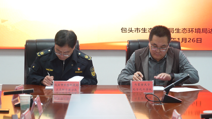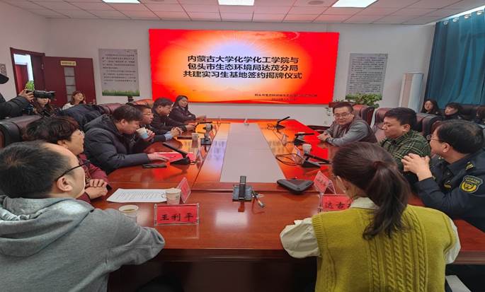 学院党委副书记温海鹏介绍了学校、学院发展历程、办学情况、师资建设及人才培养等情况,并表达了与达茂旗及生态环境局合作意愿,宾主双方热烈发言,双方就人才培养、实习实践等达成初步合作意向,座谈会后,学院党委副书记温海鹏代表学院与包头市生态环境局达茂分局局长苏建军签署实习实践基地框架协议,并与参会旗领导共同揭牌。随后,参会人员一同参观了实习生基地的办公环境和住宿环境。