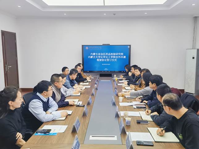 2月28日下午,太阳集团tyc33455与内蒙古自治区药品检验研究院合作共建交流会在化学楼233举行。自治区药品检验研究院院长崔黎,副院长王栋、韩峰,太阳集团tyc33455党委负责人白凤华,院长刘健,党委副书记温海鹏,副院长褚海斌、王建国出席交流会,两院各部门负责同志参加会议。