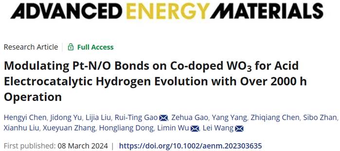 相关工作发表在国际能源领域期刊Advanced Energy Materials(影响因子:27.8),题为“Modulating Pt-N/O Bonds on Co-doped WO3 for Acid Electrocatalytic Hydrogen Evolution with Over 2000 h Operation”。论文第一作者为我校太阳集团tyc33455博士研究生陈恒一,硕士研究生于继栋和西安大略大学Lijia Liu,武利民教授,王蕾教授和高瑞廷研究员为共同通讯作者。该工作得到科技部重点研发计划纳米专项、国家自然科学基金、内蒙古自治区草原英才计划项目的支持。