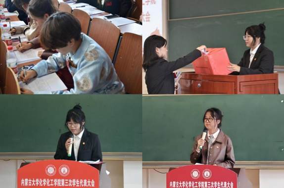 在后续的会议上,全体学生代表以无记名投票的方式进行选举,分别选举产生新一届学生会和研究生会主席团成员。大会副秘书长佟婧老师宣布了大会选举产生的第二十四届学生会(研究生会)主席团成员名单。卢鑫宇、项雯娟、张辰当选学生会主席团成员,孟朝晗、解普阳、樊旭当选研究生会主席团成员。