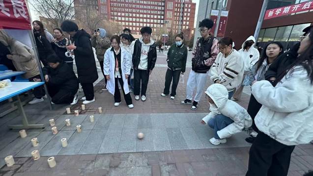木射游戏既考验着同学们的判断力和空间感知能力,也考验着同学们的心态。同学们认准目标抛出木球,正如生活中的我们为了梦想奋力一搏。