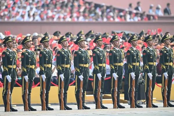随着激昂的国歌奏响,五星红旗冉冉升起,整个天安门广场洋溢着庄重与热烈的氛围。