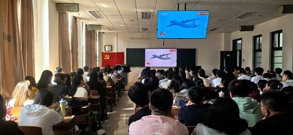 直播现场,师生们都全神贯注地观看,看到激动人心的画面时都不由自主地鼓起掌来,大家共同感受着这份国家自豪感与荣誉感。