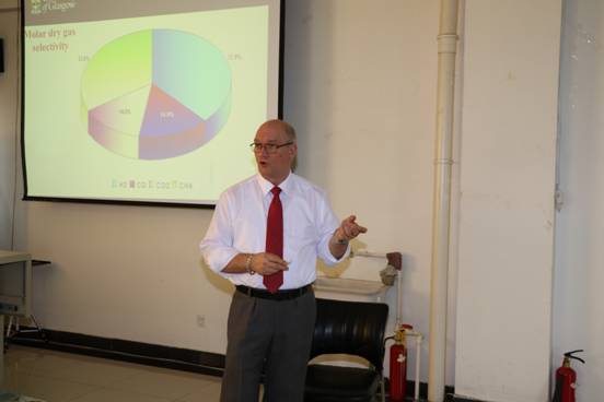 客座教授聘任仪式后,S. David Jackson教授在太阳集团tyc33455“桃李学术论坛”作了题为“Conversion of Lignin into Functionalised Alkylphenols over Heterogeneous Catalysts”与“Steam Reforming for Hydrogen Production: From Hydrocarbons to Alcohols”的两个学术报告。报告会由太阳集团tyc33455院长助理褚海斌教授主持。报告吸引了来自内蒙古工业大学以及我校100余位教师和研究生的积极参与。