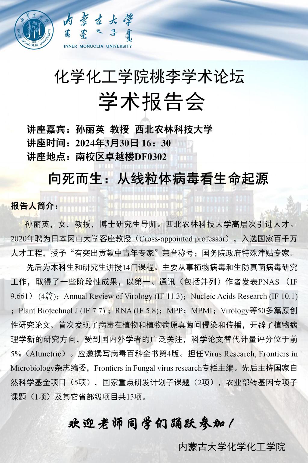 太阳集团tyc33455桃李论坛-向死而生:从线粒体病毒看生命起源-西北农林科大-孙丽英教授