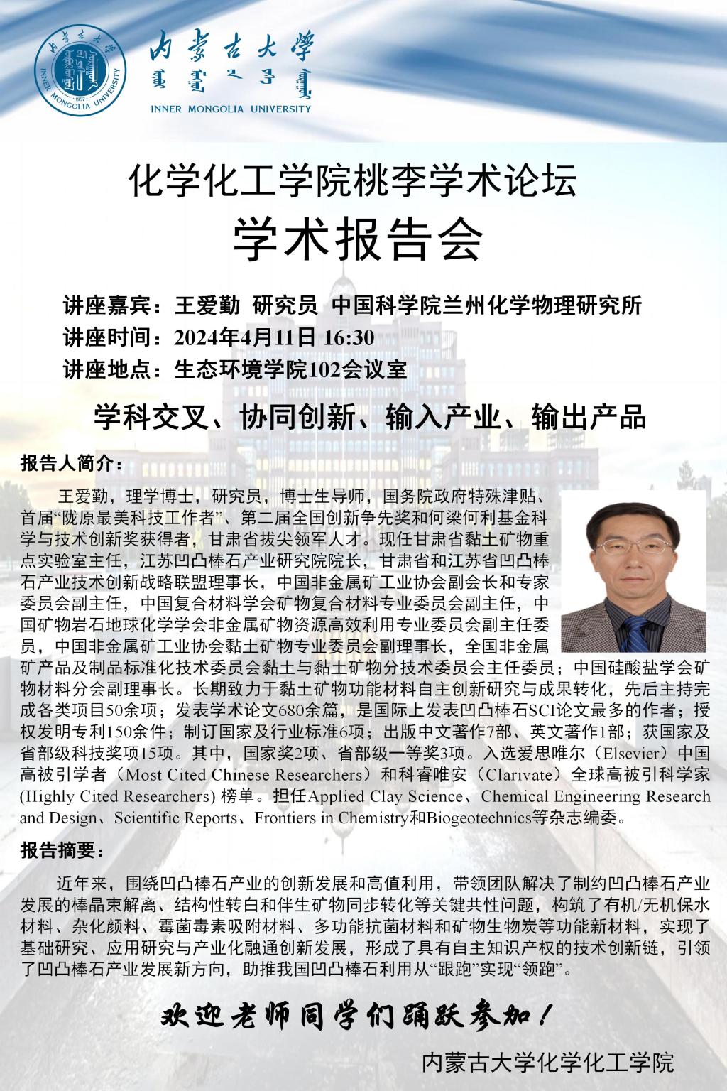 太阳集团tyc33455桃李论坛-学科交叉、协同创新、输入产业、输出产品-中科院兰州化学物理所-王爱勤研究员