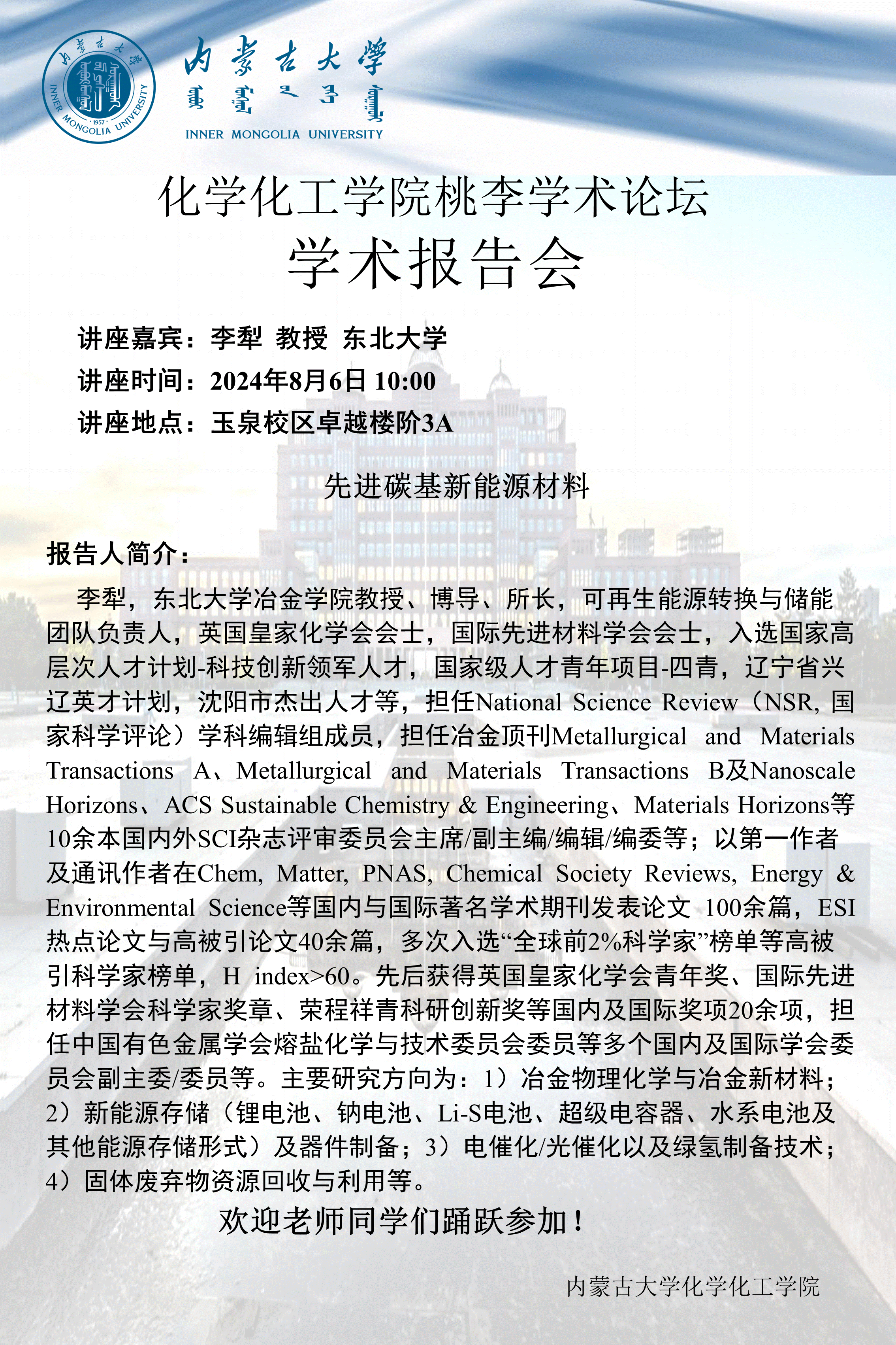 太阳集团tyc33455桃李学术论坛——先进碳基新能源材料 李犁 教授 东北大学